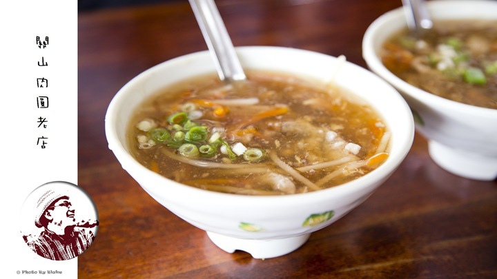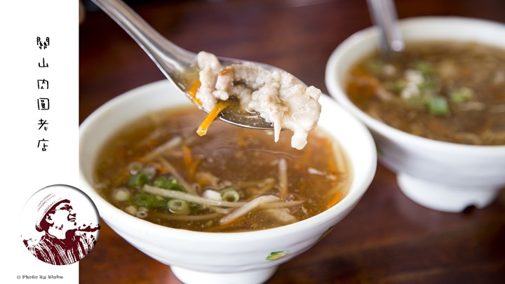 肉羹的肉使用夾心肉,關山肉圓老店是使用整塊手工切,吃起來很扎實,羹湯的味道表現也不俗,肉羹的肉應該有先醃過,本身就帶點鹹味,算是滿傳統的口味。