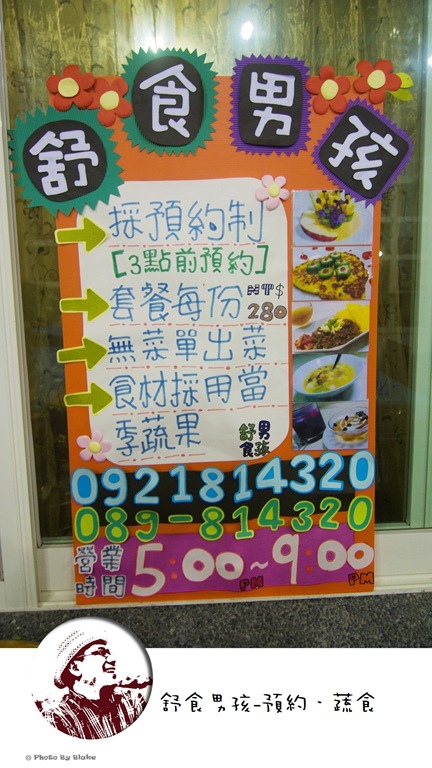 舒食男孩位於台東關山,位置不在於熱鬧的大街上,所以要找其實有一點點困難,但是布雷克在最後有提供了地圖。另外因為黃媽媽都是一整天在準備料理的,所以沒有提早預約,可能就會撲空了,黃媽媽有交待,一定要下午3點前預約喔!要不然就要等隔天了,整個套餐才$280元,但是沒有菜單,就是看黃媽媽當天有選到的蔬果為主。